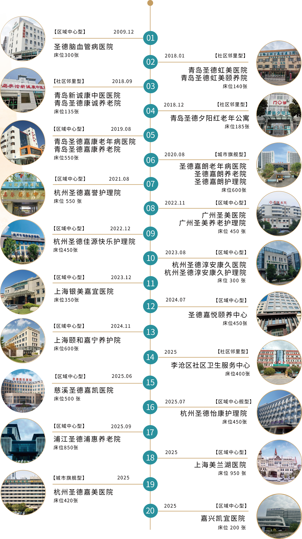 圣德医养康复集团是全国率先为失能、失智老人提供“医、养、康、护”全方位、专业化系统服务的大型医疗康养机构。集团已在杭州、上海、广州、北京、青岛共设15家连锁医养结合机构,其中涵盖二级医院6家,一级医院5家,以及多家护理院、综合门诊、社区居家养老服务中心,养老、医疗床位约5500张,所持物业面积约20万方,立志成为中国最大的医养结合连锁品牌!