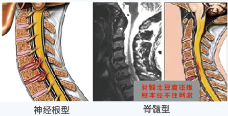 3.脊髓型颈椎病:临床上症状多先从下肢开始,出现下肢无力行走不稳、跛行、易摔倒、行走笨拙、蹦跚步态,继而发展至上肢,持物易坠落、不能完成精细动作。括约肌功能障碍。躯干和四肢不规则的感觉减退,植物经功能紊乱。